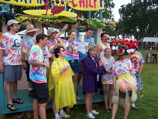 The rain stopped a couple hours later and everyone came out to play in the sun and sing to the judges. We made 350 jello shots but decided to eat them all rather than play Jello-Shot Twister this year. Cherry bombs were good too.