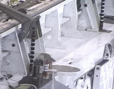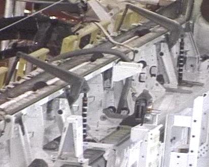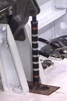 Pushrods for these descriptions are numbered from forward (#1) to aft (#6). The closest of these six pushrods to the crew compartment (#1) is not visible to the crew from windows W9 or W10. Additionally, the lowest of the 10 stripes (silver) is not visible due to "monkey fur", brush-like bristles covering the opening that the pushrod sticks out of.